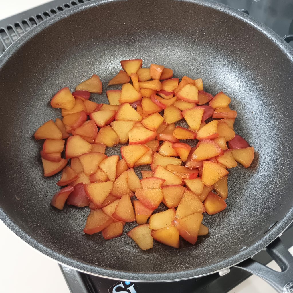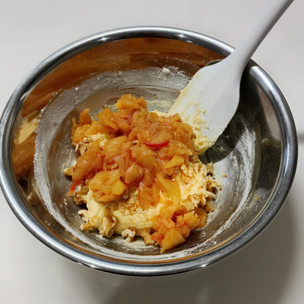 りんごの砂糖煮、くるみを加えて混ぜます。