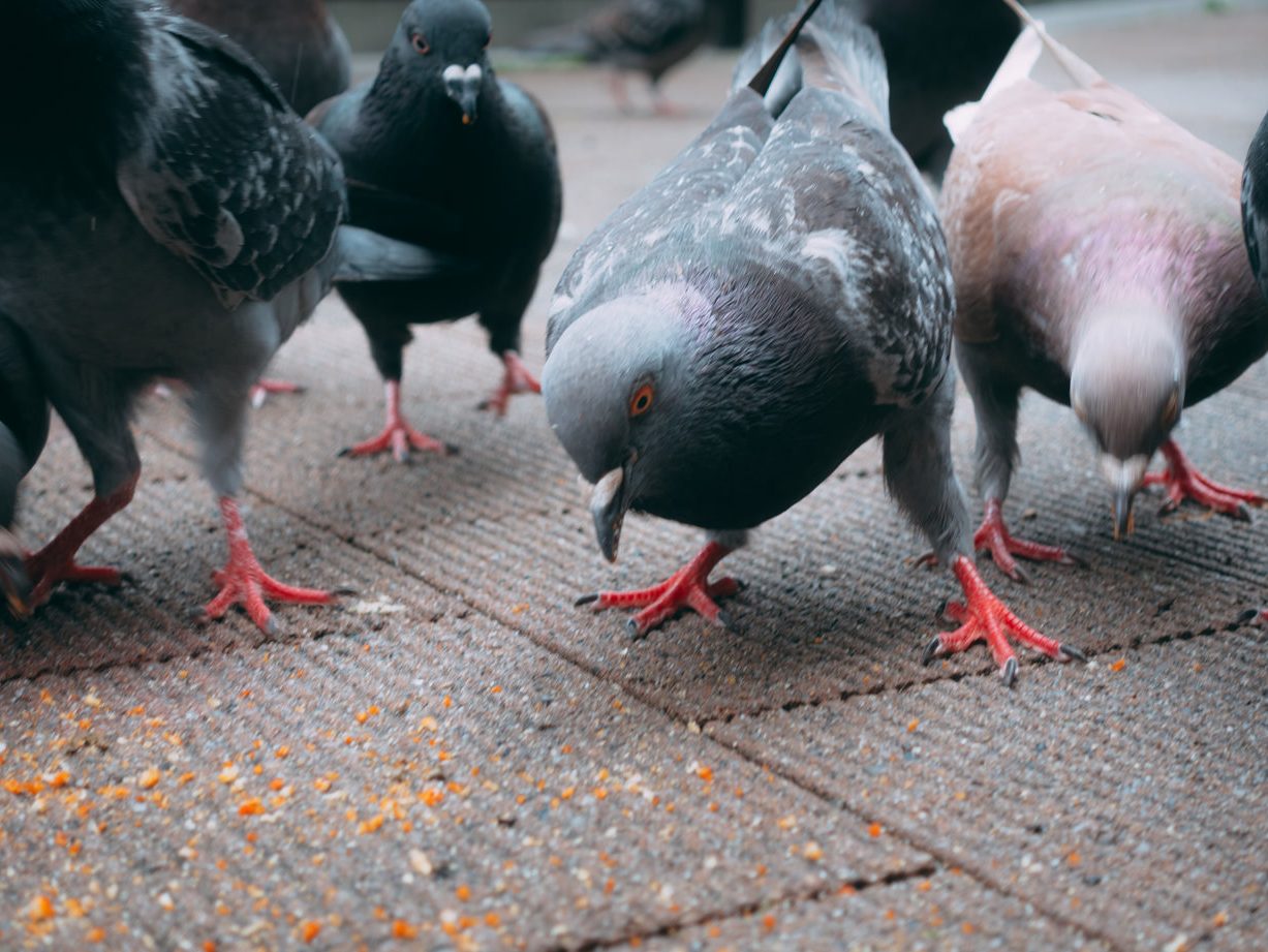 「いいんですか?」と目を丸くする鳩。まるで豆鉄砲をくらったようです。すごい勢いで欠片をむさぼり食っていました。