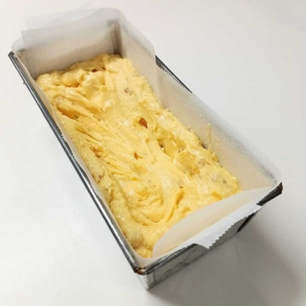 型に生地を入れます。だいたい平らになっていればOKです。