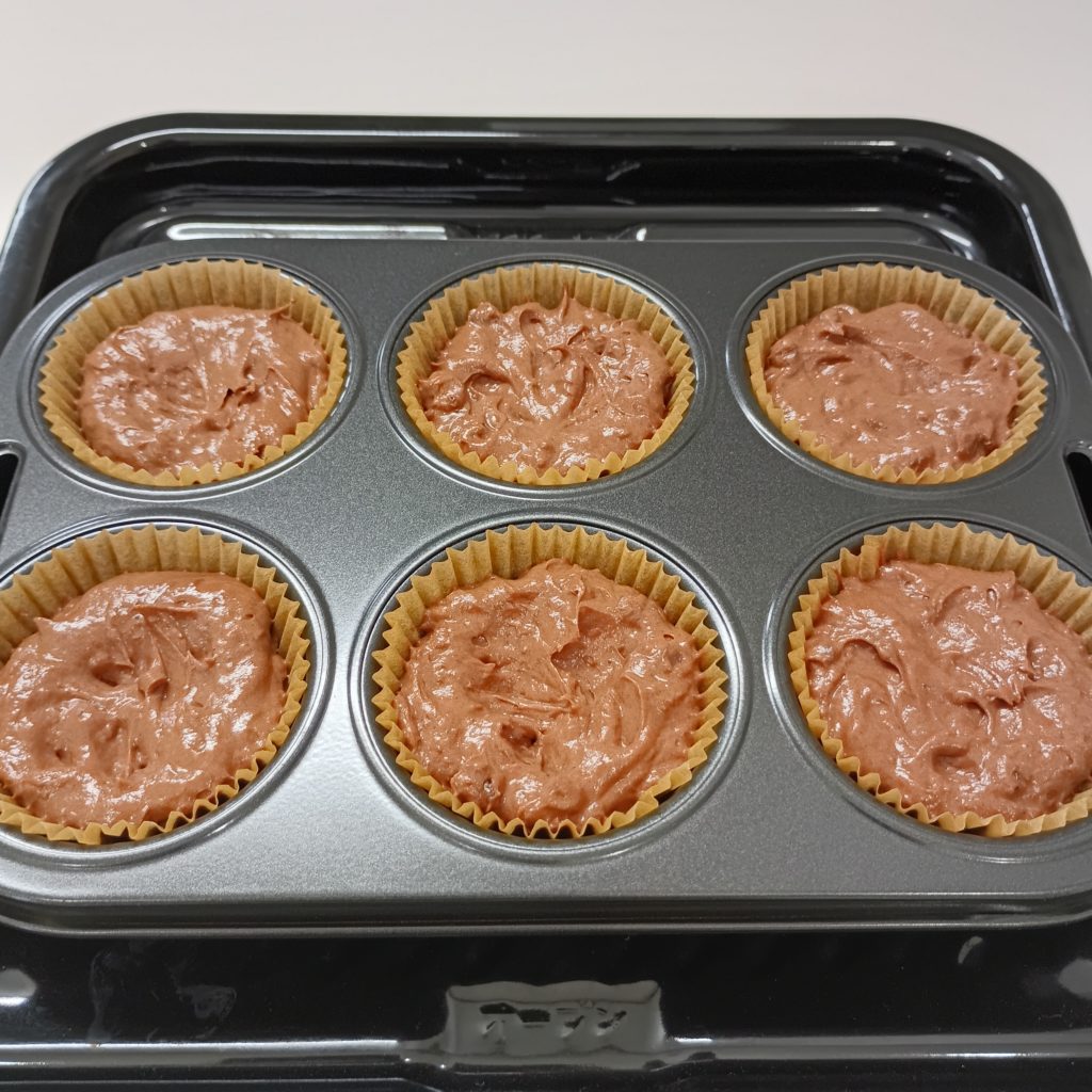 ※夏場は30分、冬場は1時間ほど前から。冷たいままだと混ぜたとき分離します。 - 型にマフィンカップを敷いておきます。