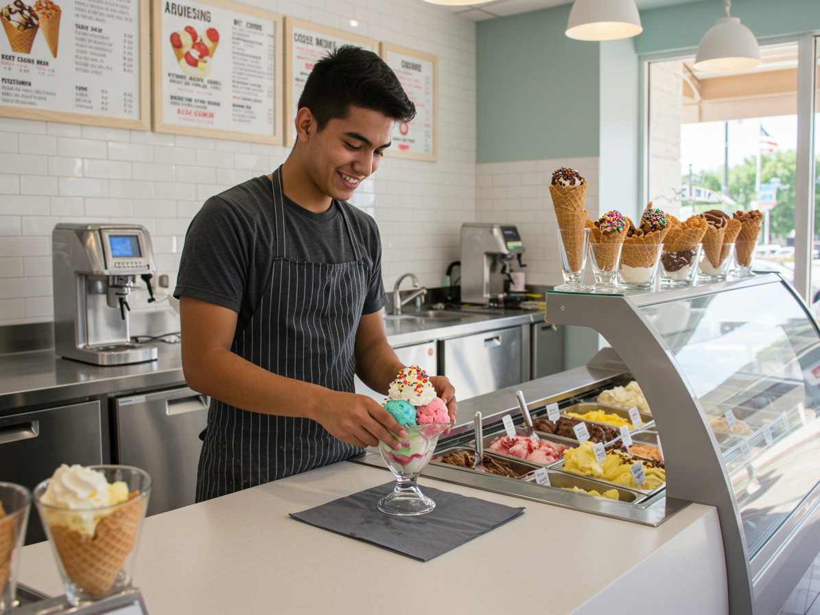 実は中身はほとんど変わりません。違うのは「温度」なのです。アイスの方がかなり低い温度で作られているんですね。(アイスは-20℃くらいで、ソフトクリームは-5℃くらい)